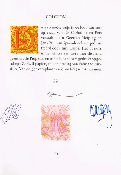 Oplage 55 genummerde en door beide vertalers en de illustrator gesigneerde exemplaren.